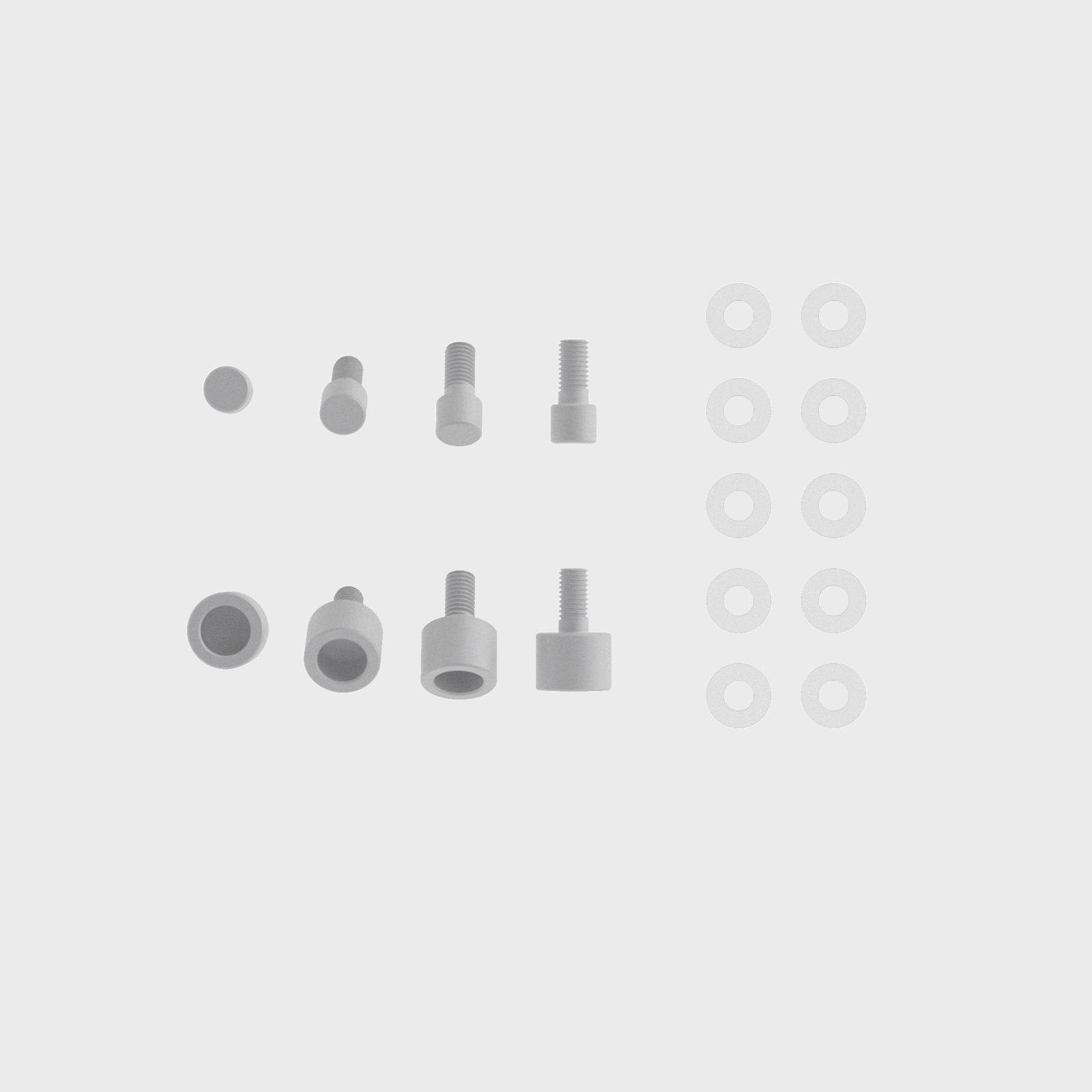 - 헤드볼트 x4, 풋볼트 x4, 고무와셔 x10개로 구성된 세트입니다.