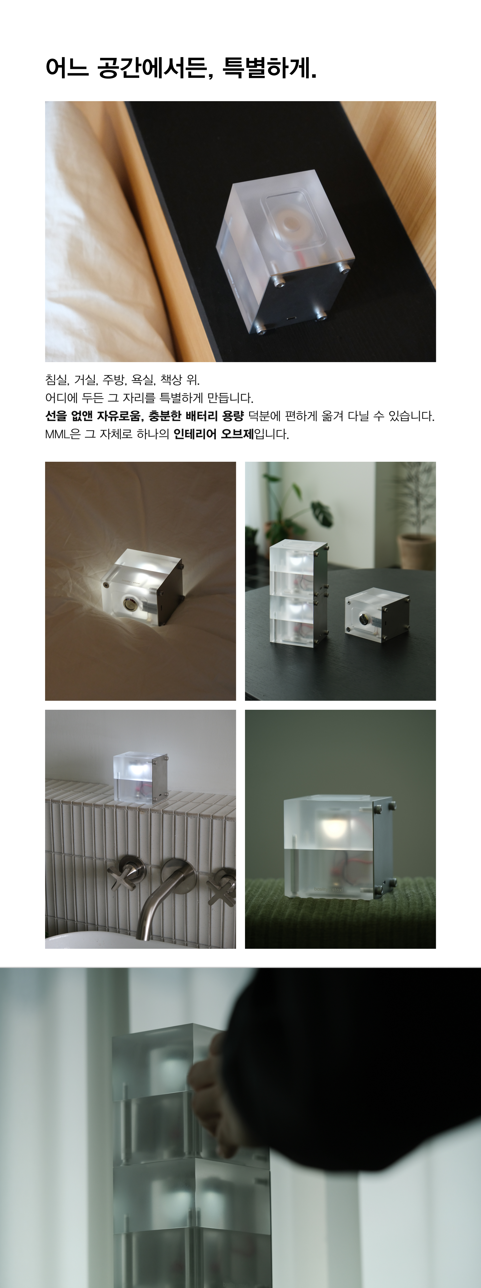 MML 은 공간에 자연스럽게 스며드는 포터블 무드 조명입니다.