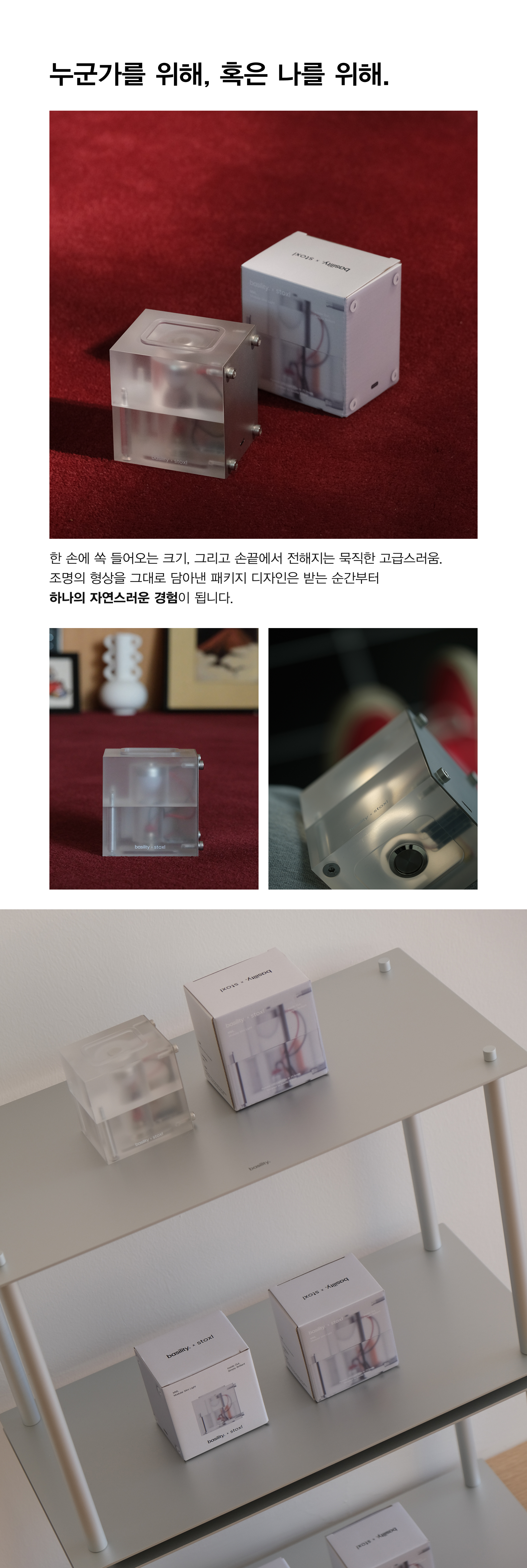 두 개 이상의 조명을 수직으로 쌓을 수 있는 모듈형 구조로 다양한 연출이 가능합니다.